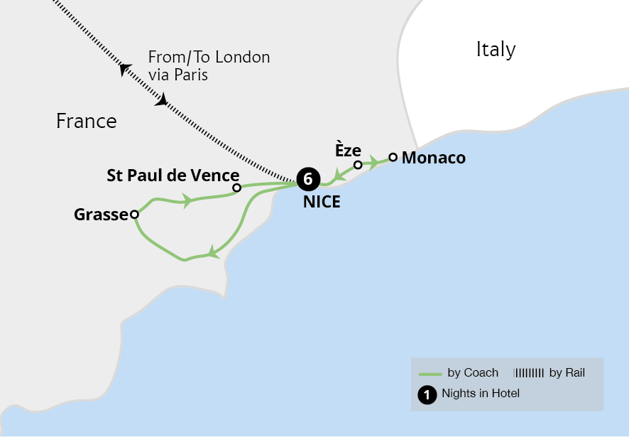 Embrace the sights, scents and flavours of the French Riviera from a boutique hotel in the popular coastal town of Cannes. Admire the wonderful gardens at St-Jean-Cap-Ferrat's opulent Villa Ephrussi de Rothschild and witness the time-honoured Changing of the Guards ceremony in Monaco. Tour the quaint Provençal town of Èze to enjoy exquisite...